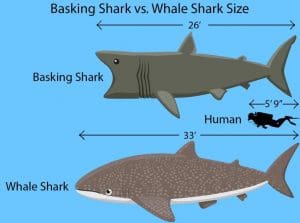 2. Filter Feeders – The whale shark and basking shark swim with their mouths wide open to consume plankton.
