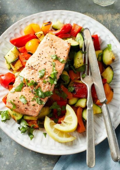 - Plate the grilled vegetables alongside the fish and serve immediately.